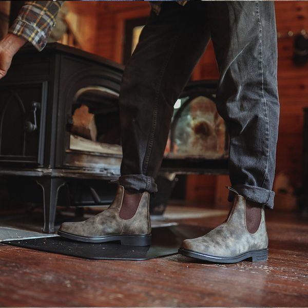 Material and specificationsMens dress boots in brown that go perfectly with a suit, or with jeans, on weekdays or weekends. These Blundstone boots are the right mix of fashion and comfort and look just as durable when new, as they do after many seasons of wear and tear.Rustic brown premium water-resistant leather